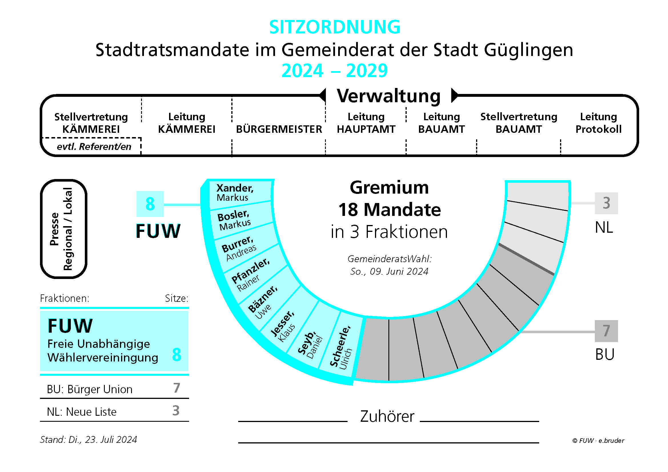 Markus Xander Fraktionssprecher 1. Stellvertretender Bürgermeister Güglingen Andreas Burrer Güglingen Markus Bosler Frauenzimmern Uwe Bäzner Frauenzimmern Daniel Seyb Güglingen